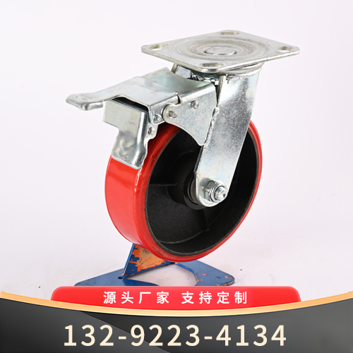 6寸 红色铁芯聚氨酯万向刹车滚轮